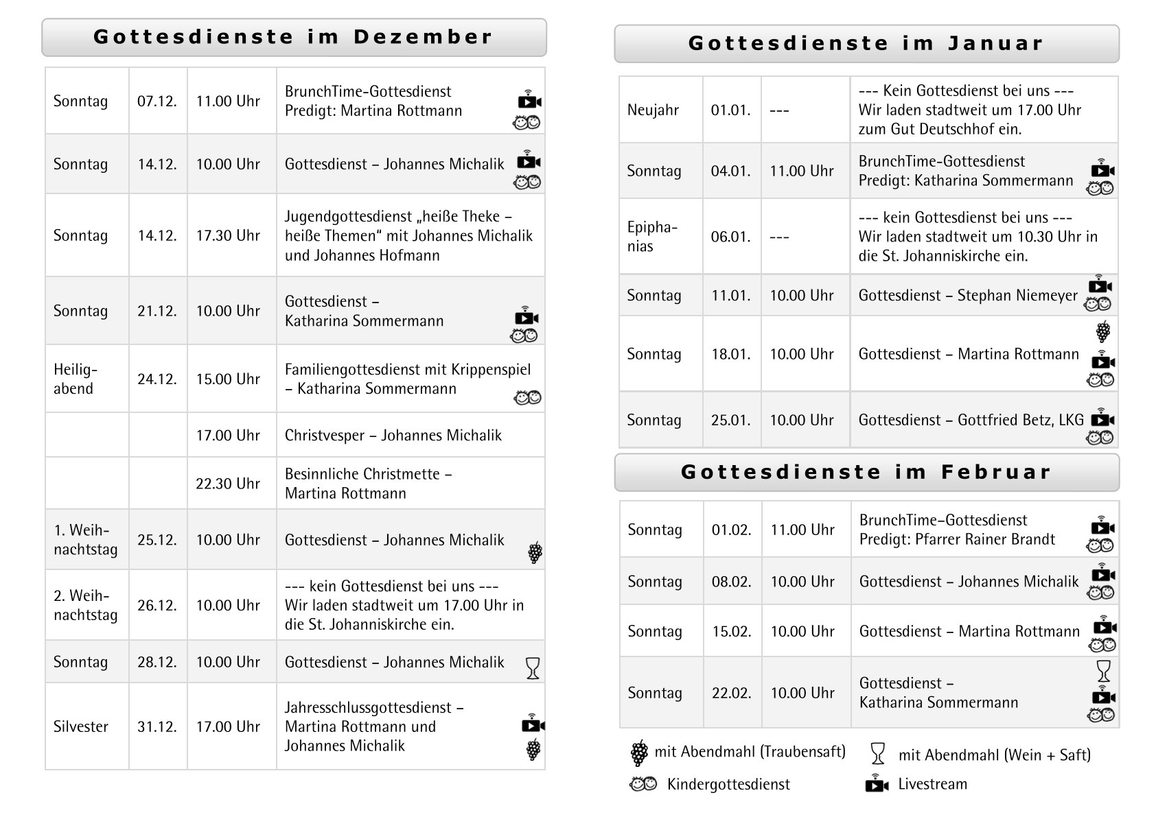 Gottesdienste Dezember 2025 - Februar 2026